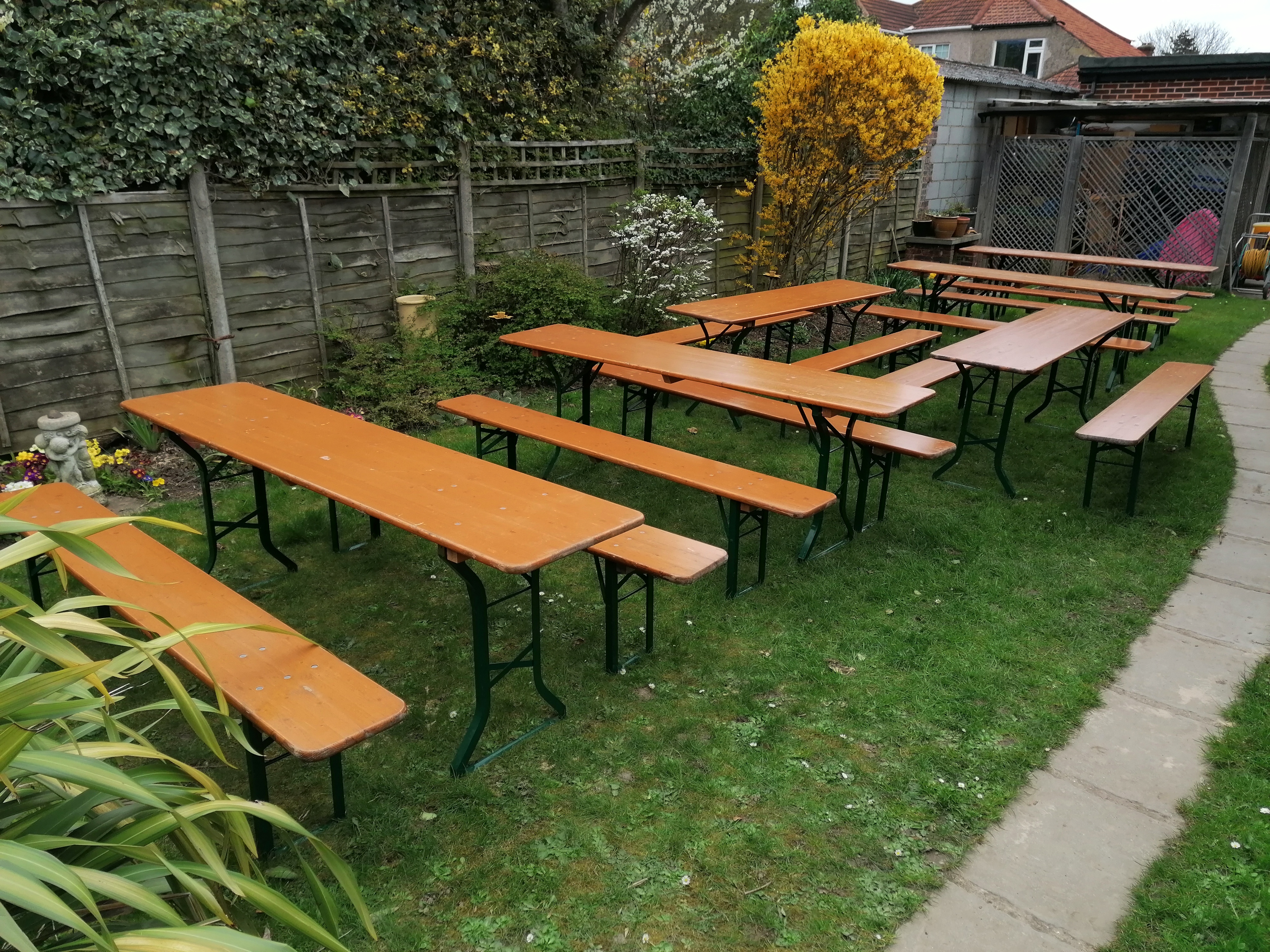 Vintage Oktoberfest folding German beer 2.2. metre garden trestle table and bench set.