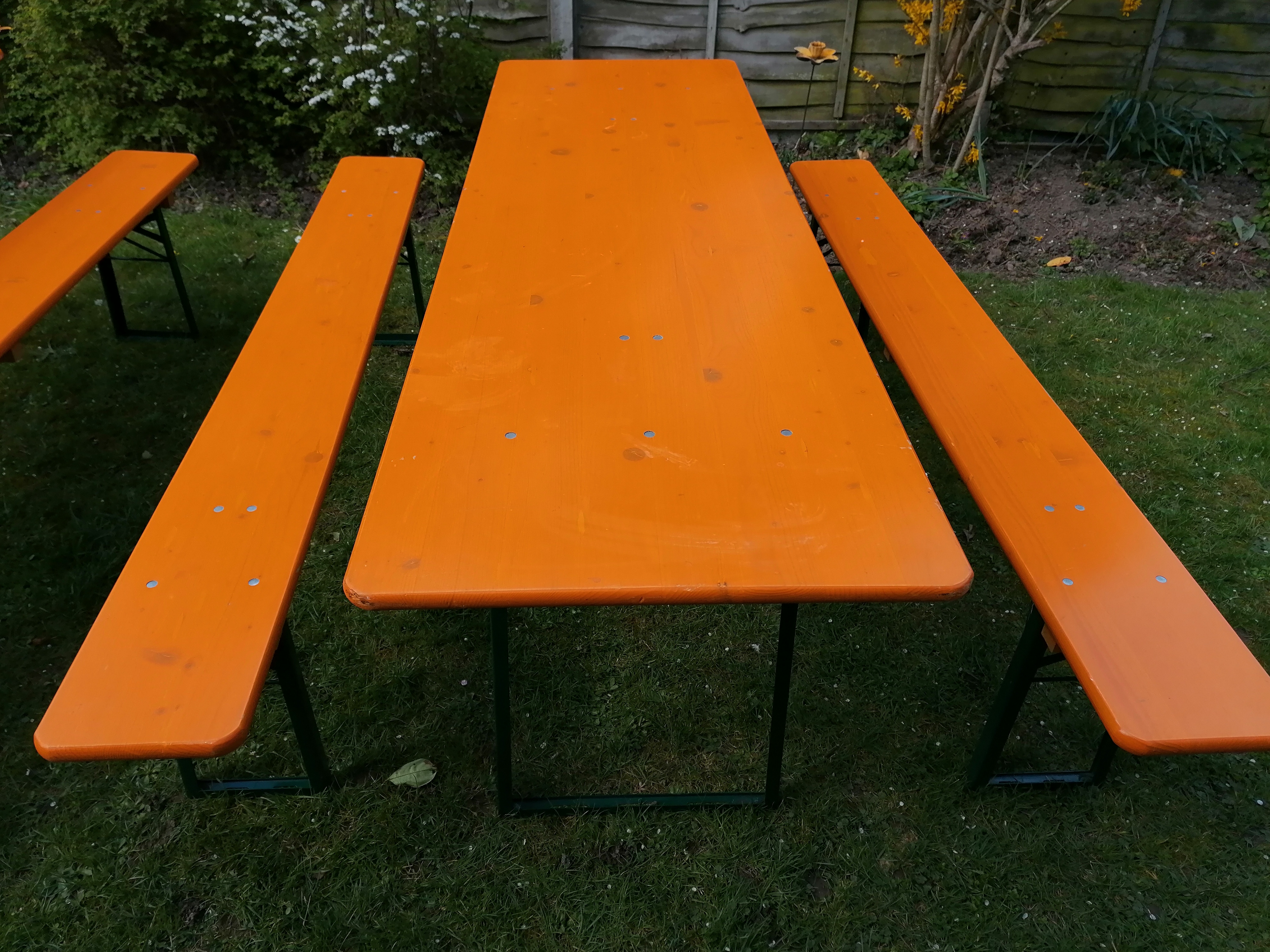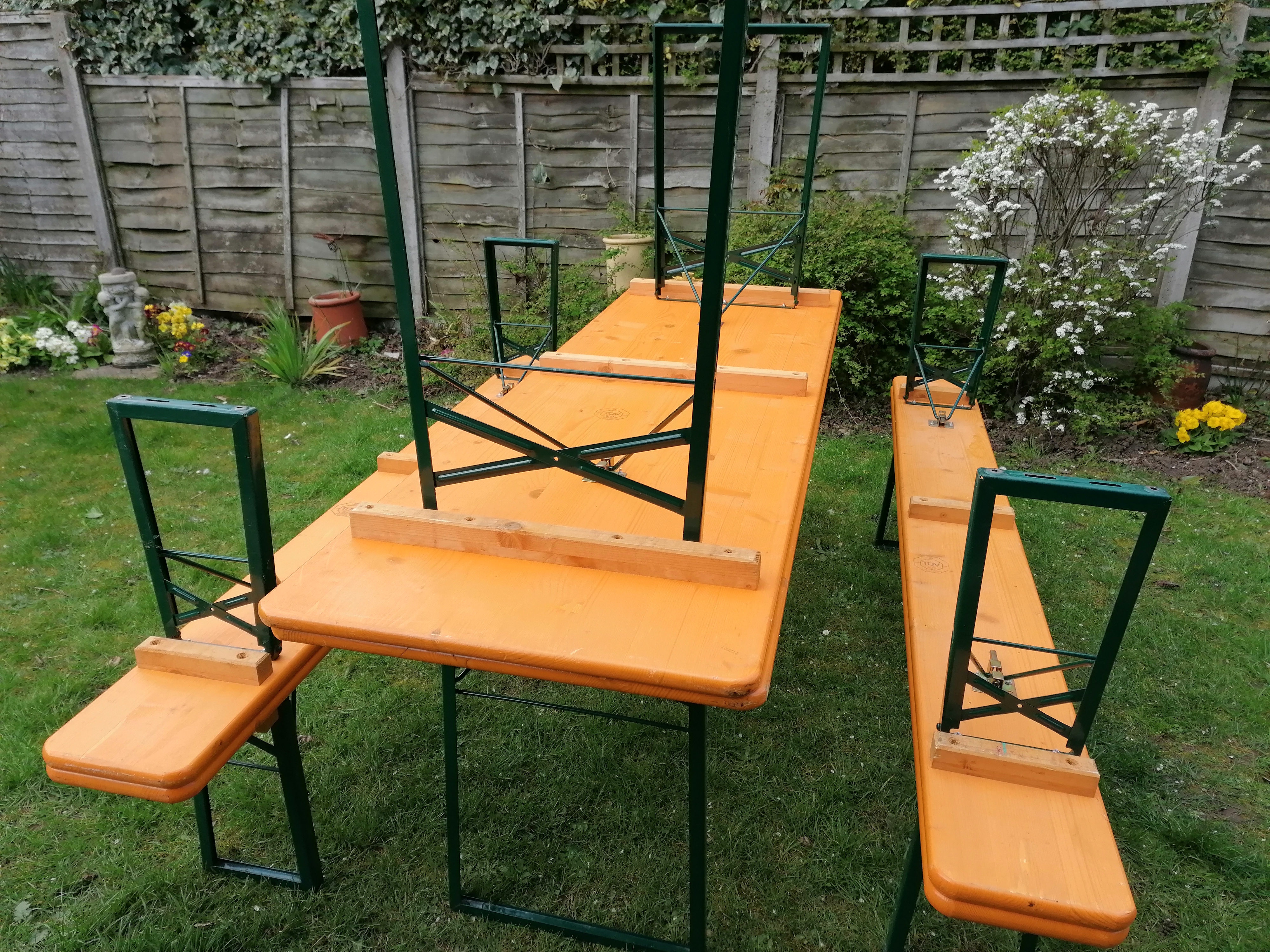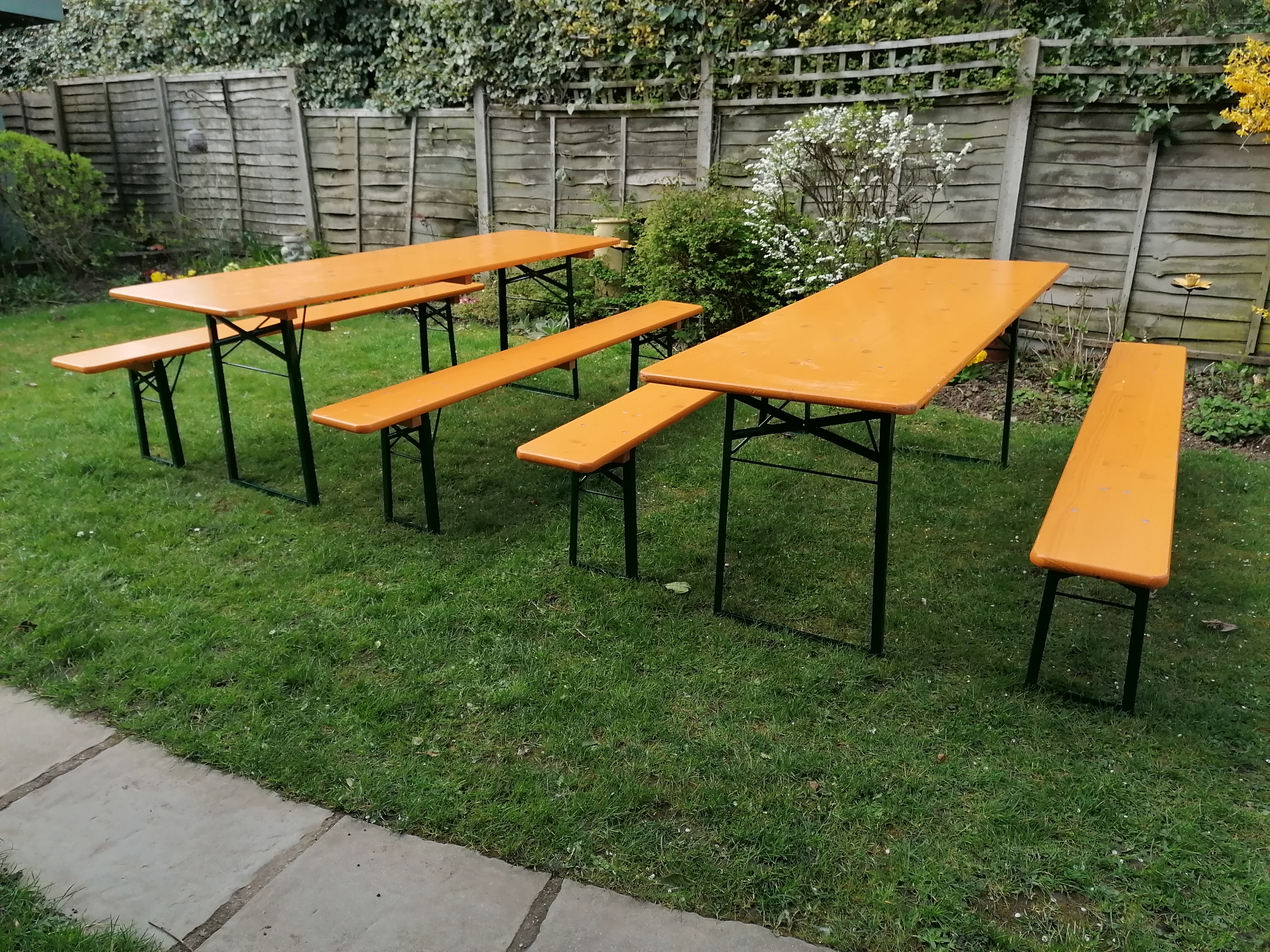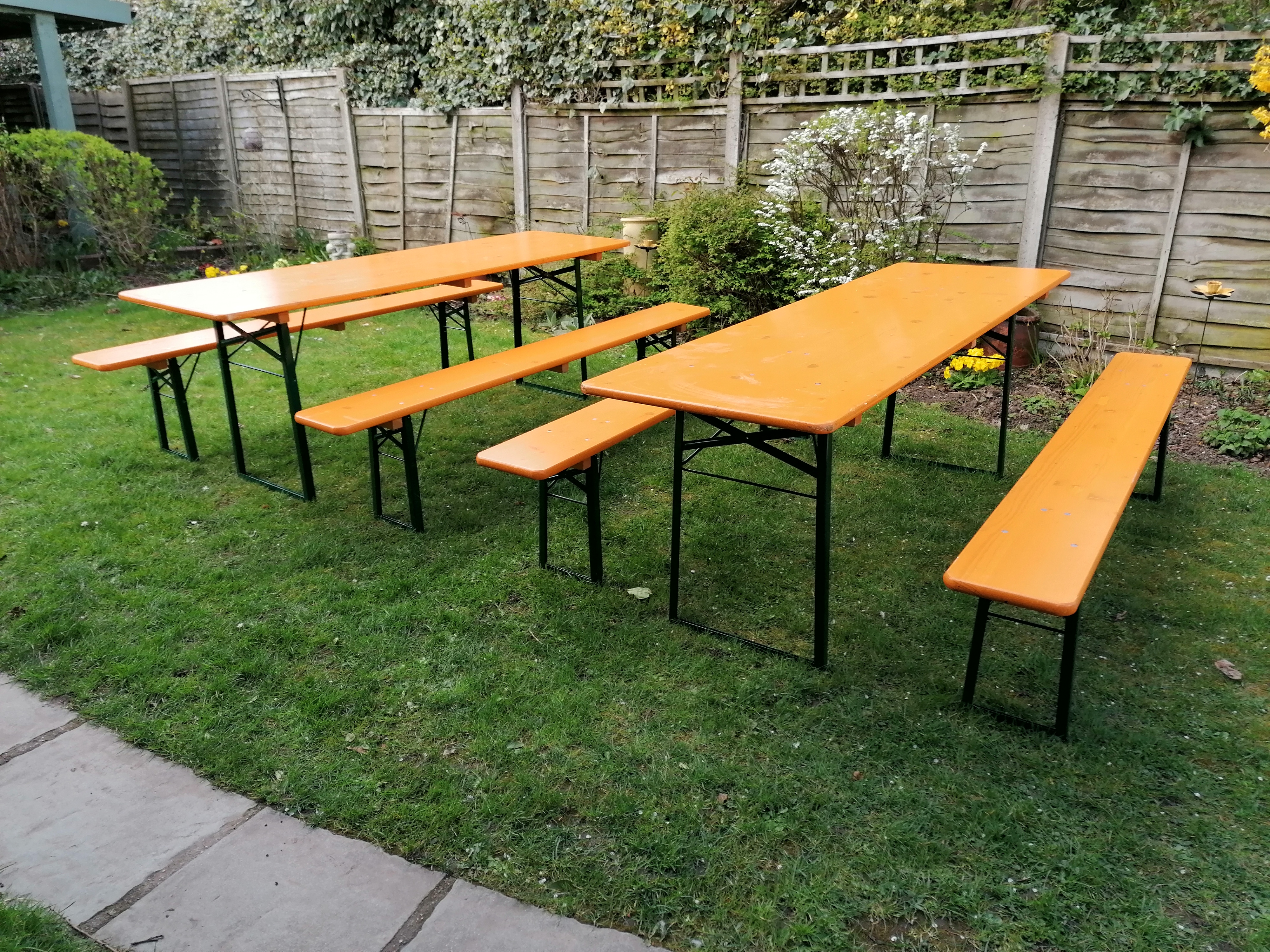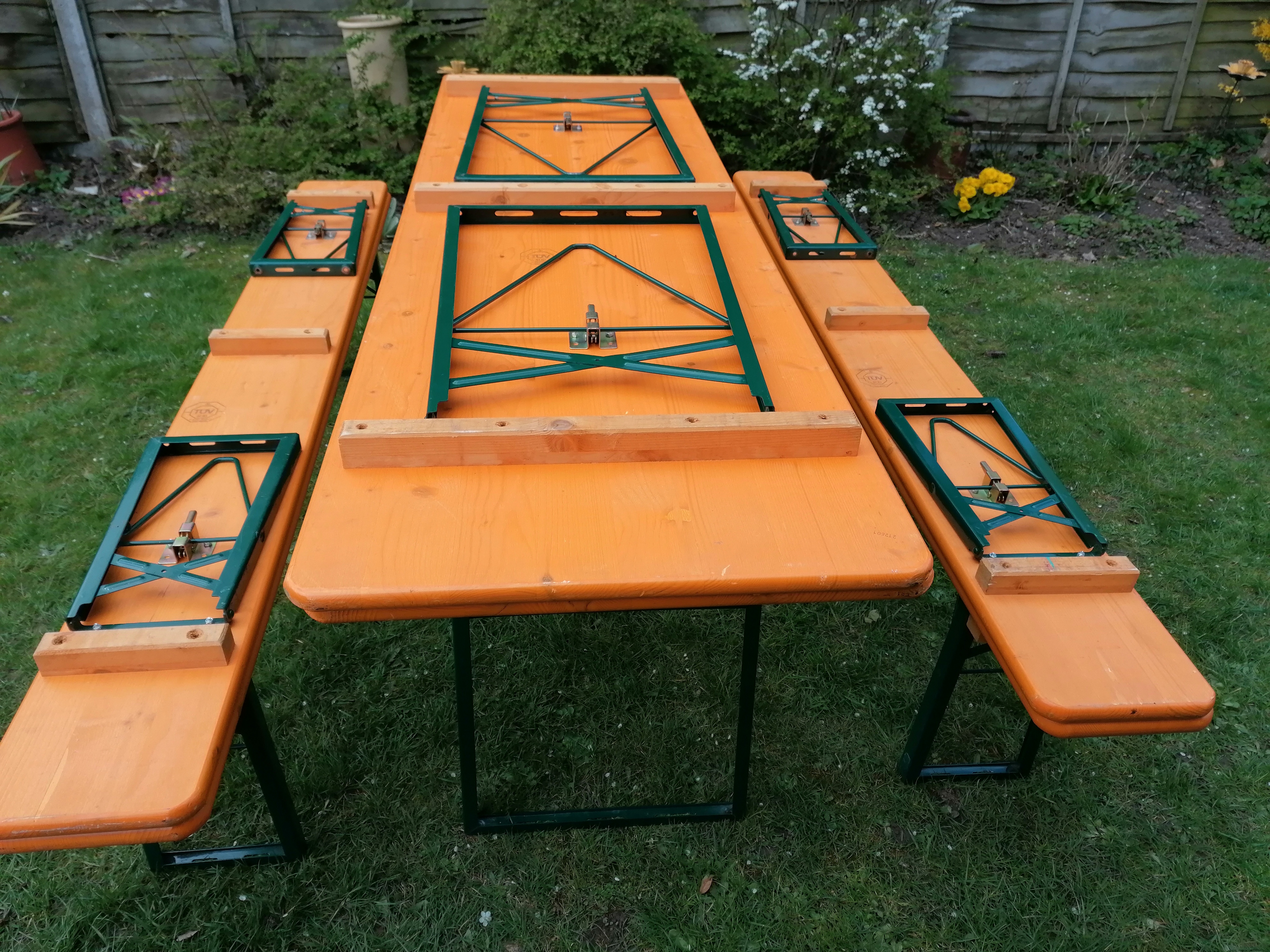 Beer garden, Oktoberfest, folding 2.2. metre garden trestle extra wide table and standard bench set.