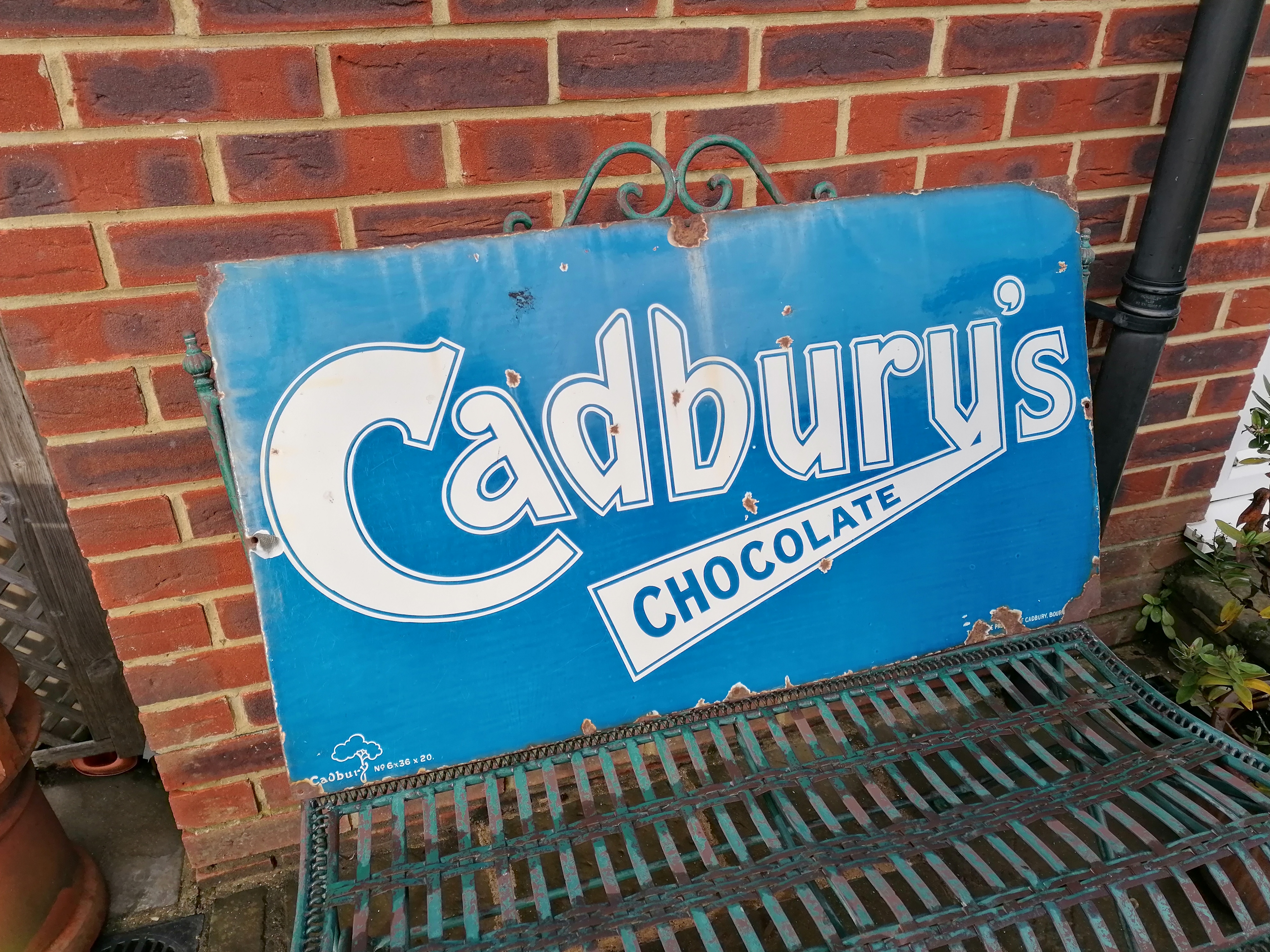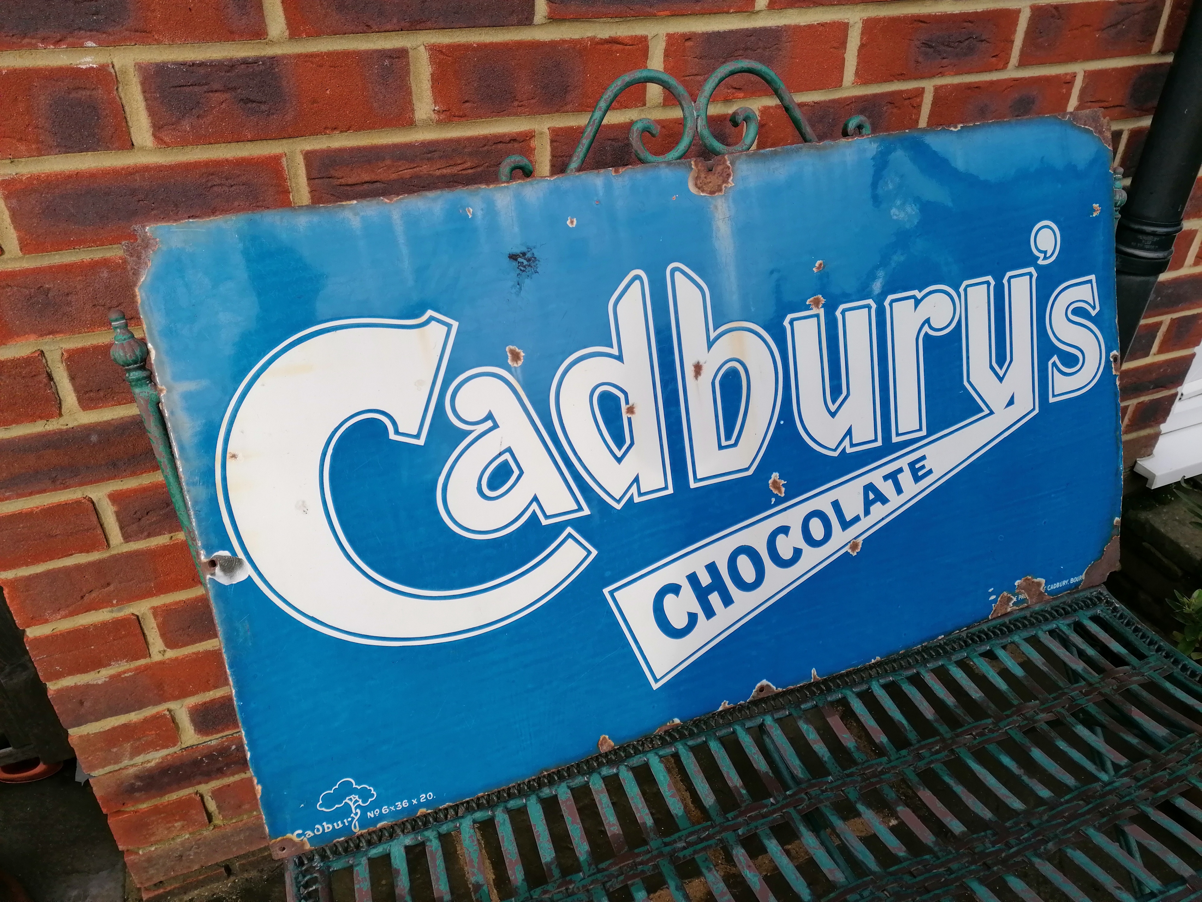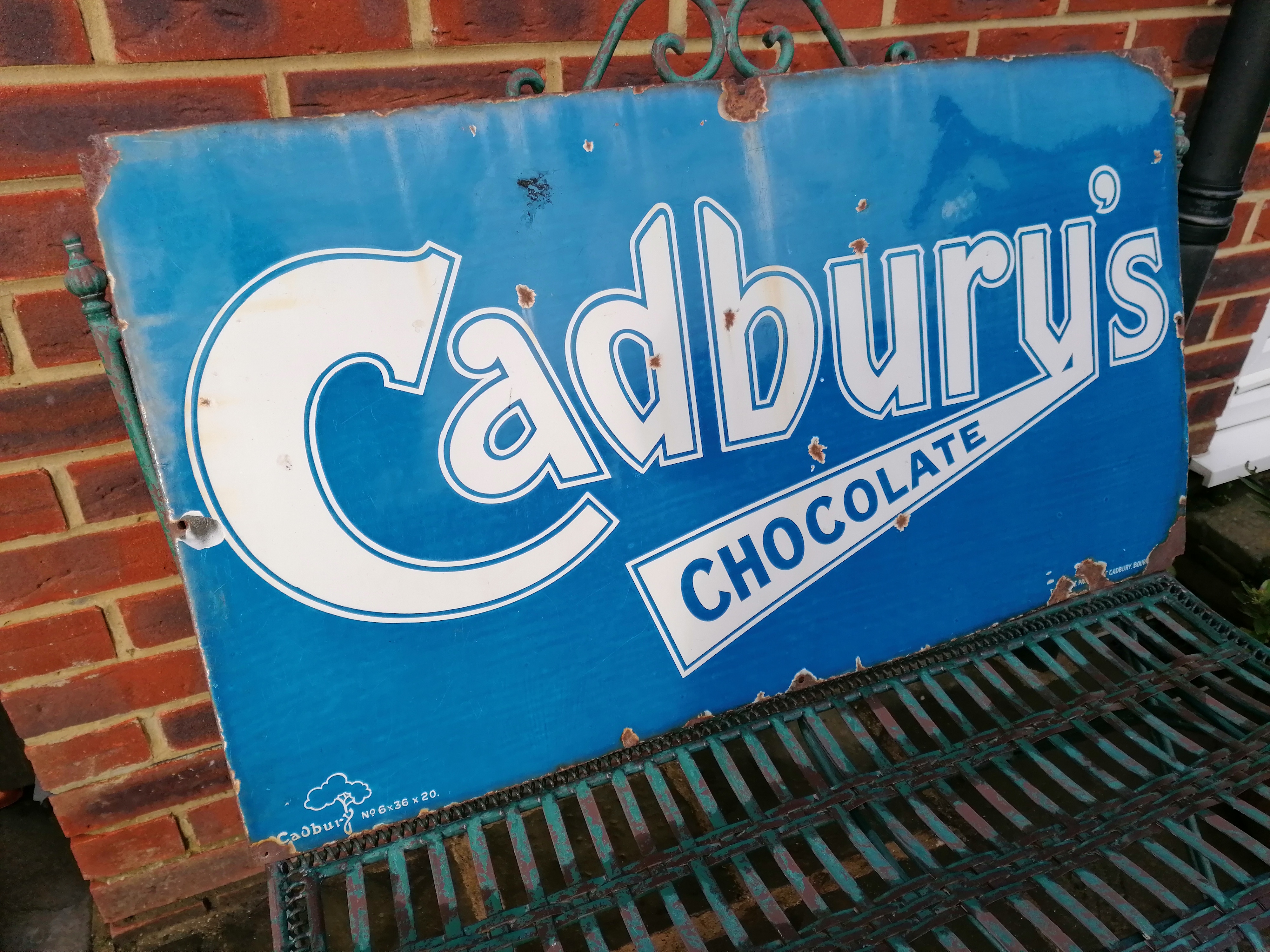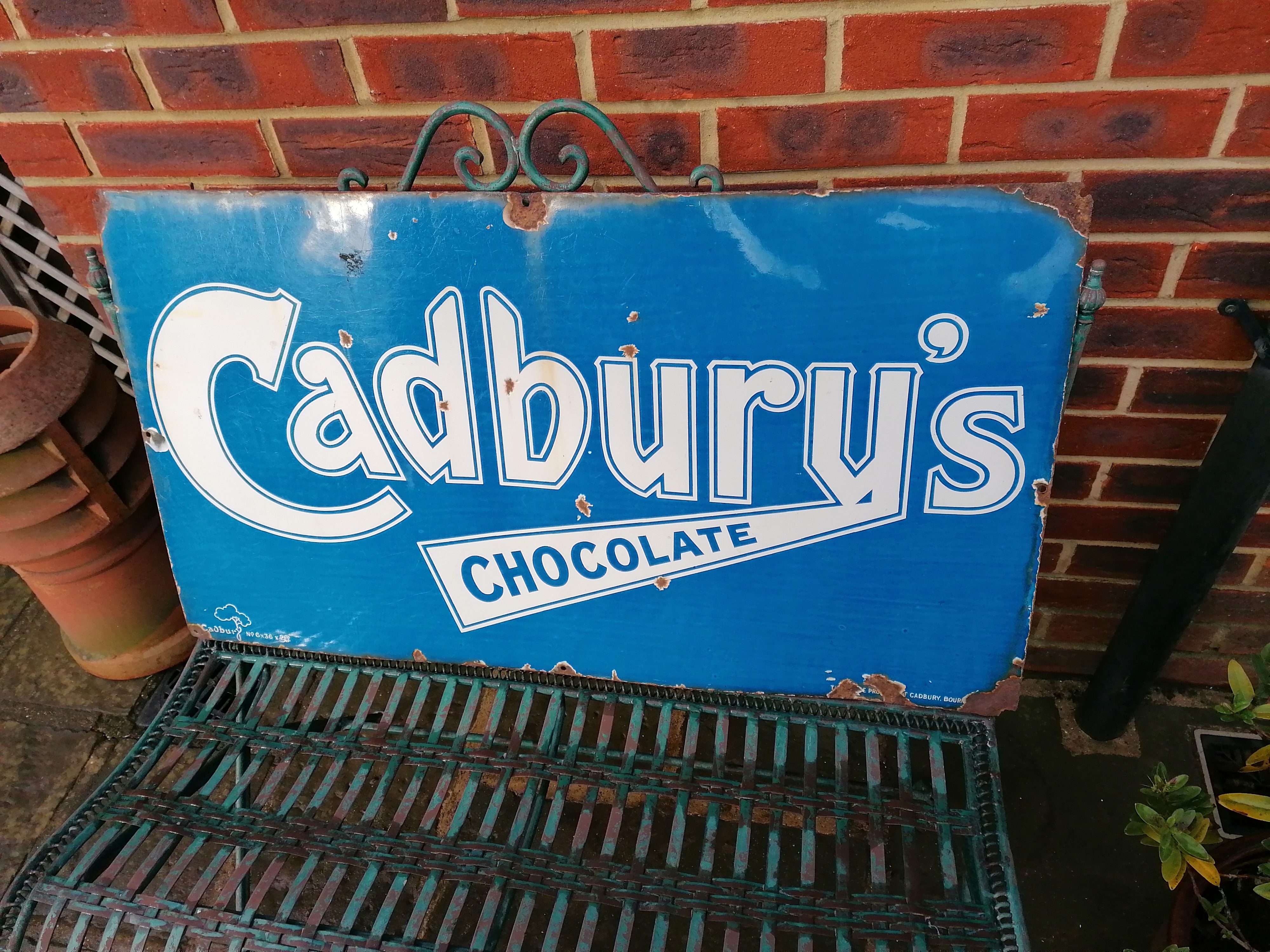 This lovely Cadburys Chocolate sign comes with age related wear and tear.