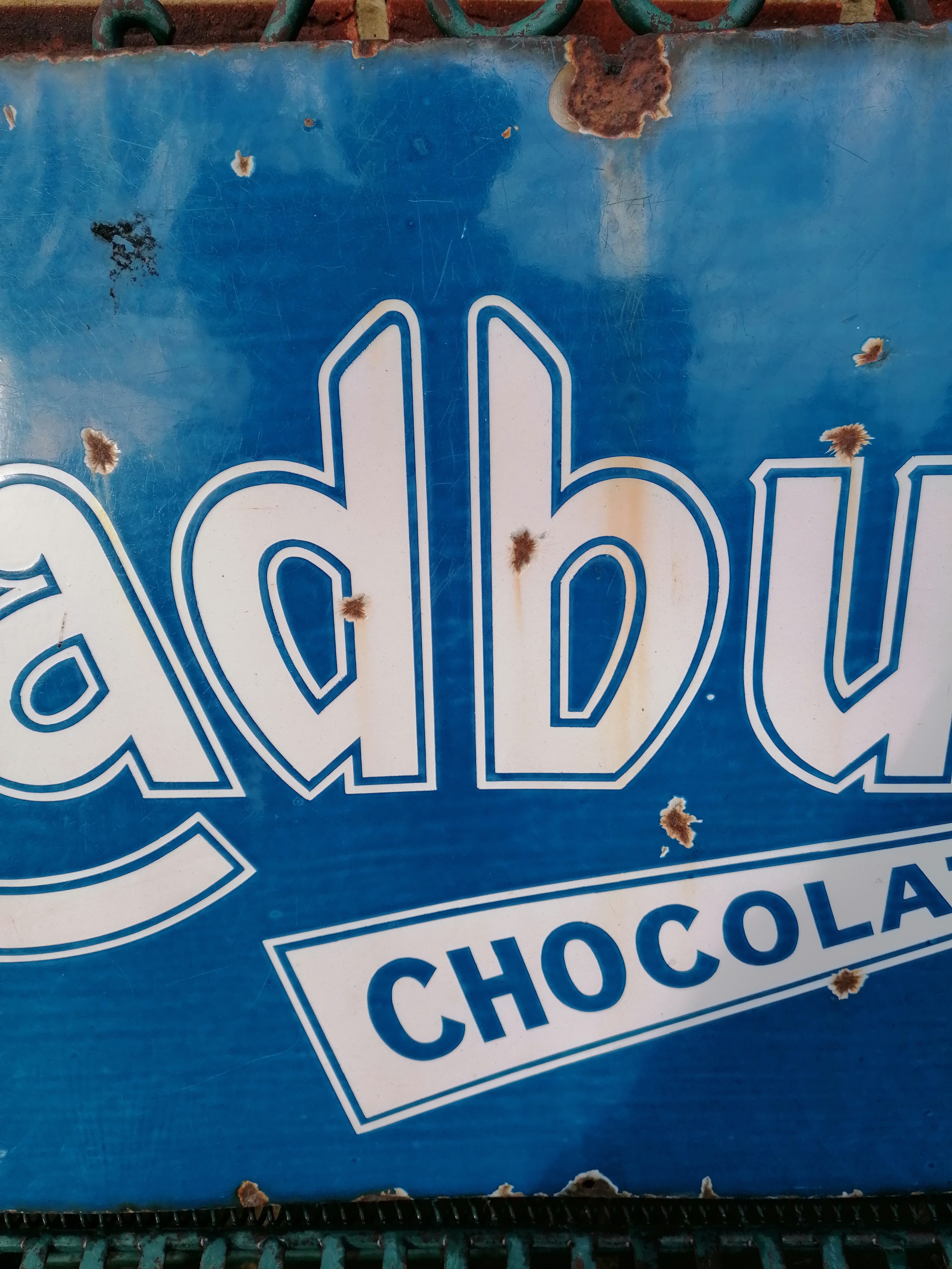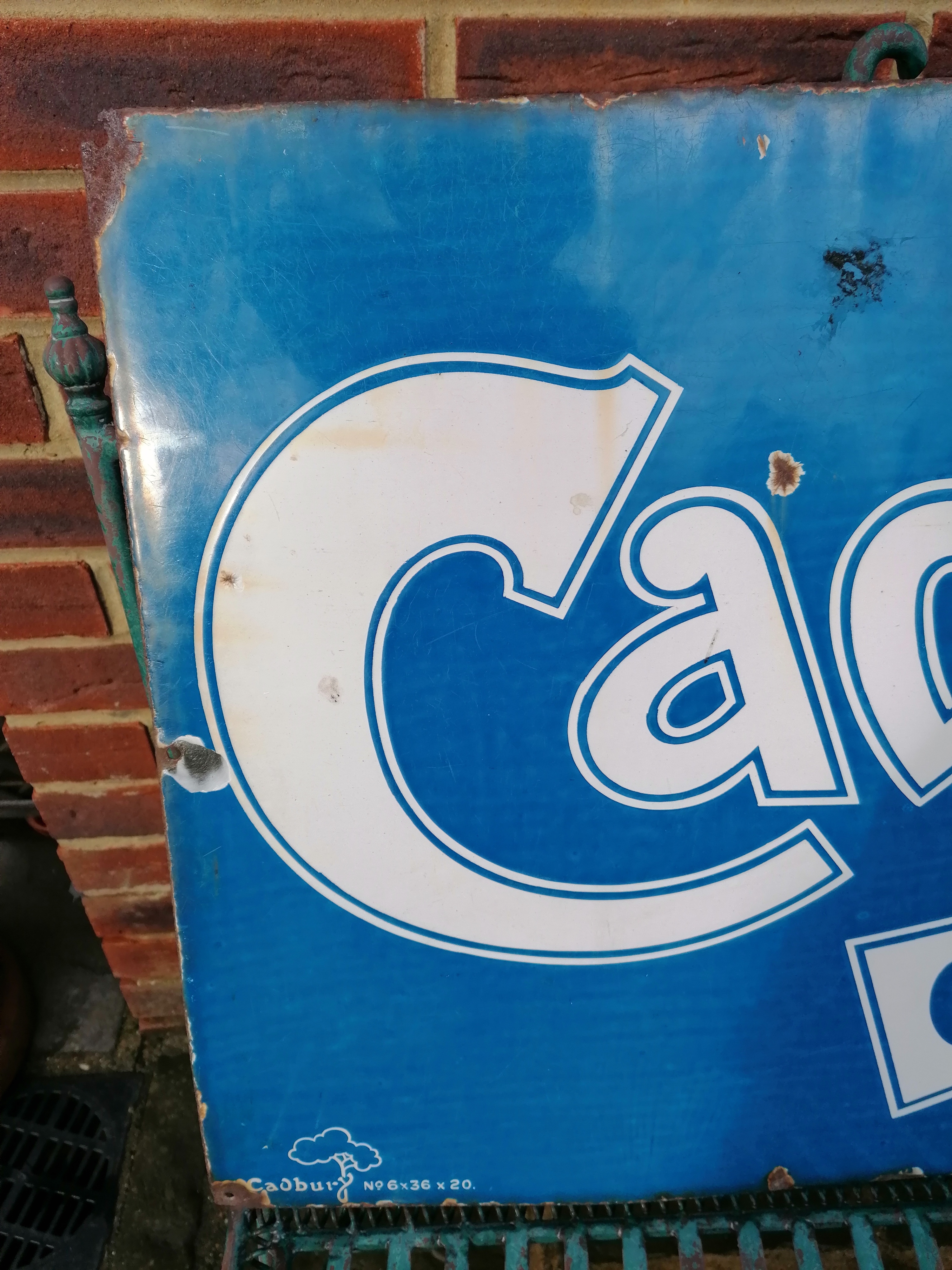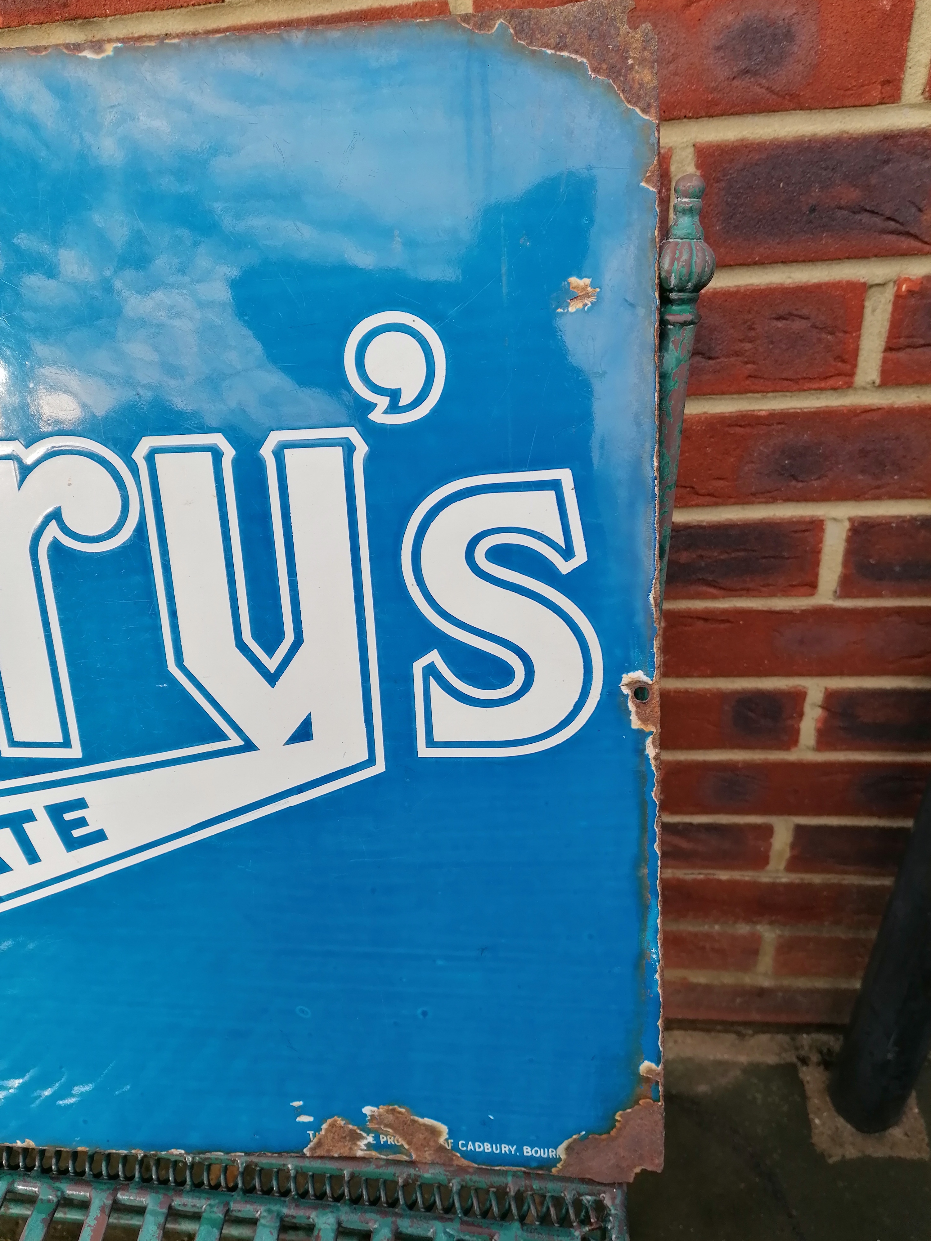 This lovely Cadburys Chocolate sign comes with age related wear and tear.