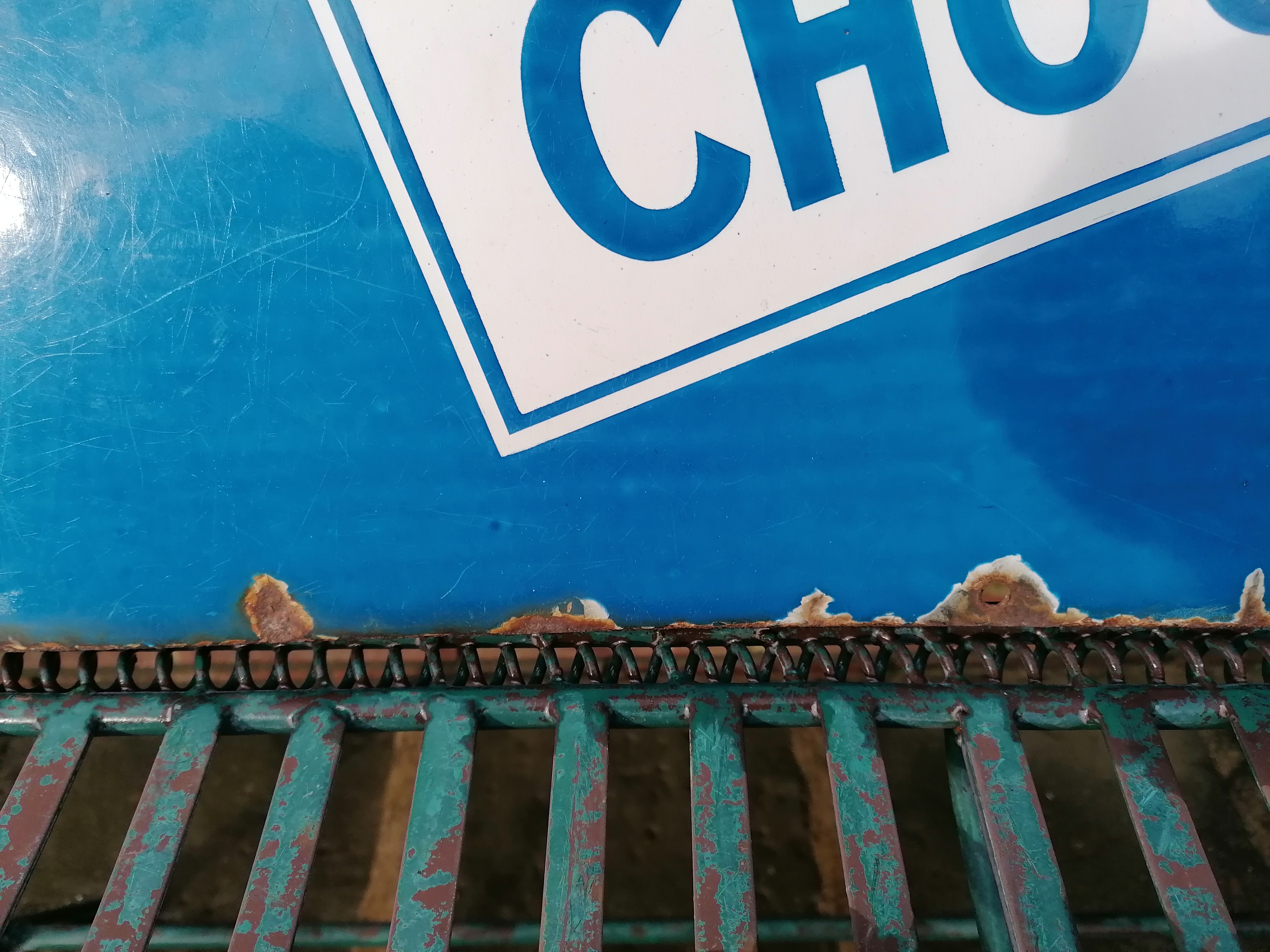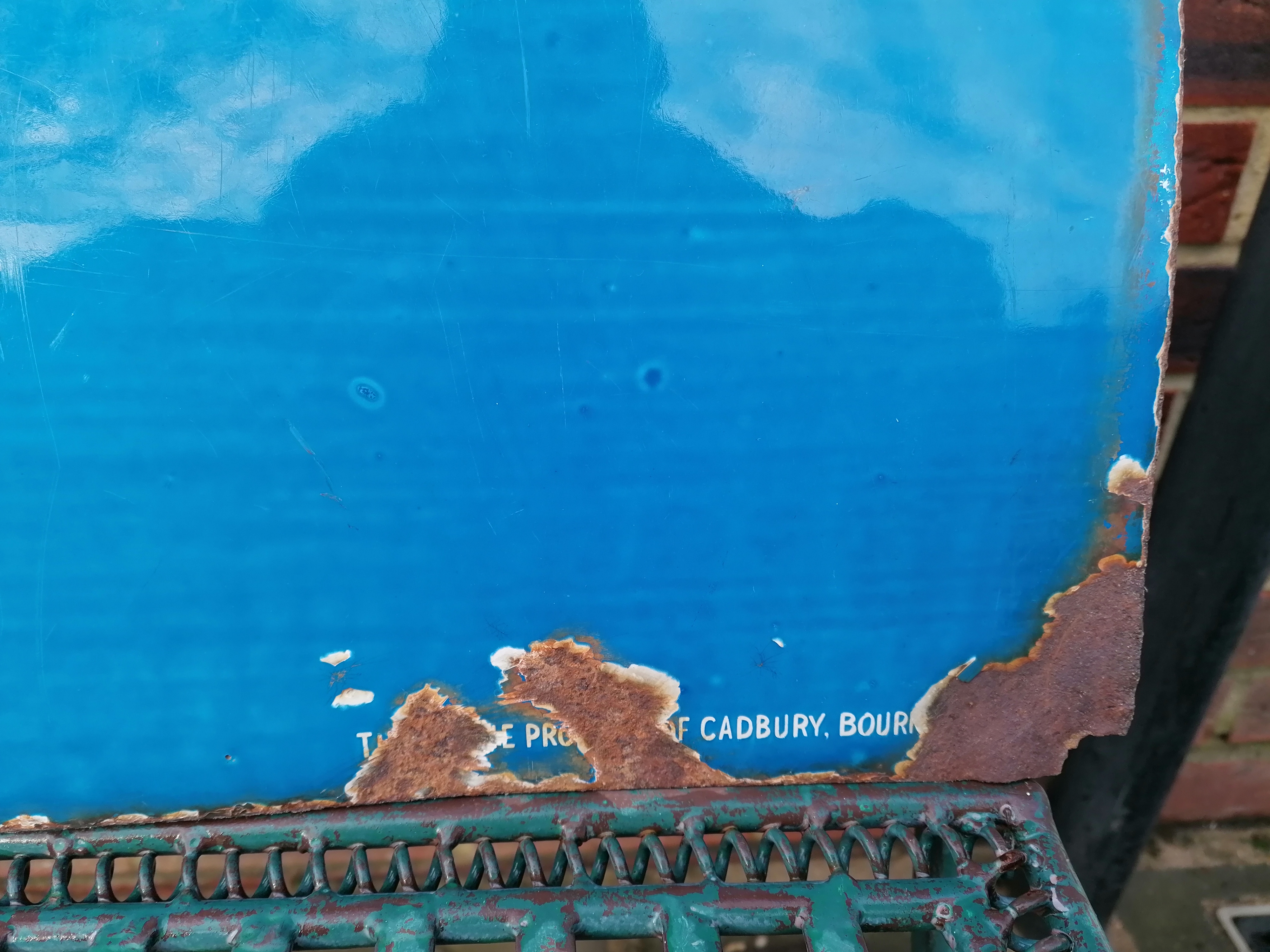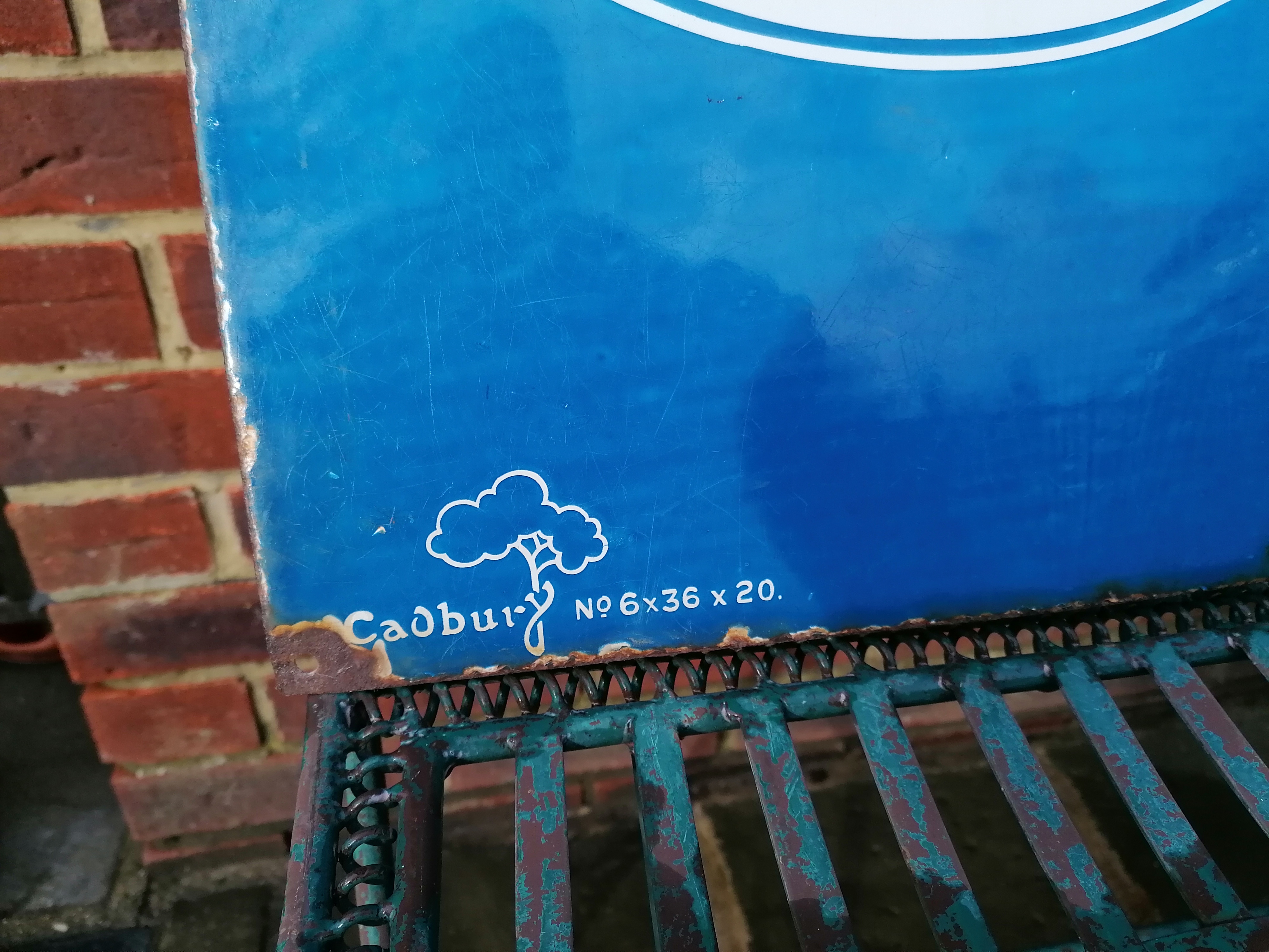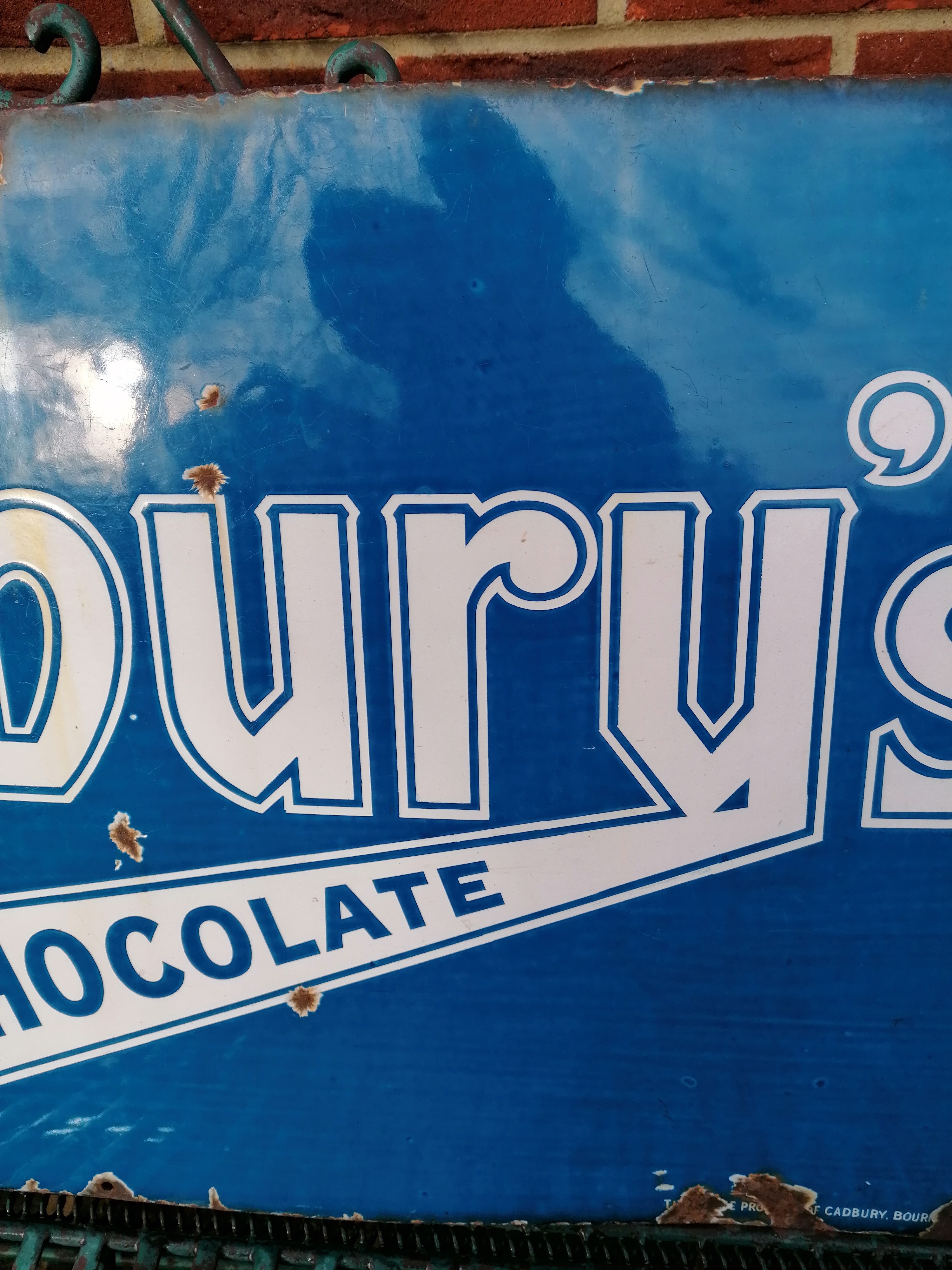 This lovely Cadburys Chocolate sign comes with age related wear and tear.