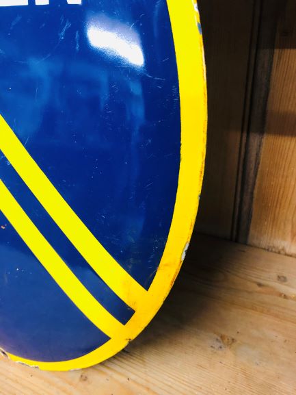 There is a small loss of enamel to the front together with some nibbling around the edges, but overall this sign remains in good condition.