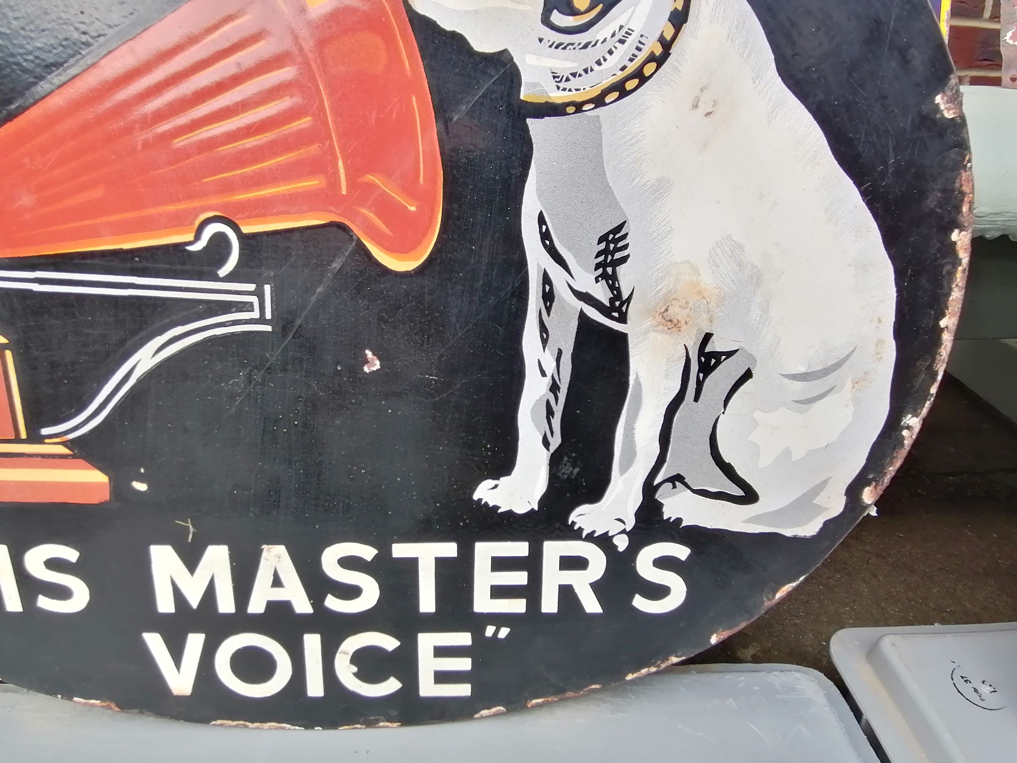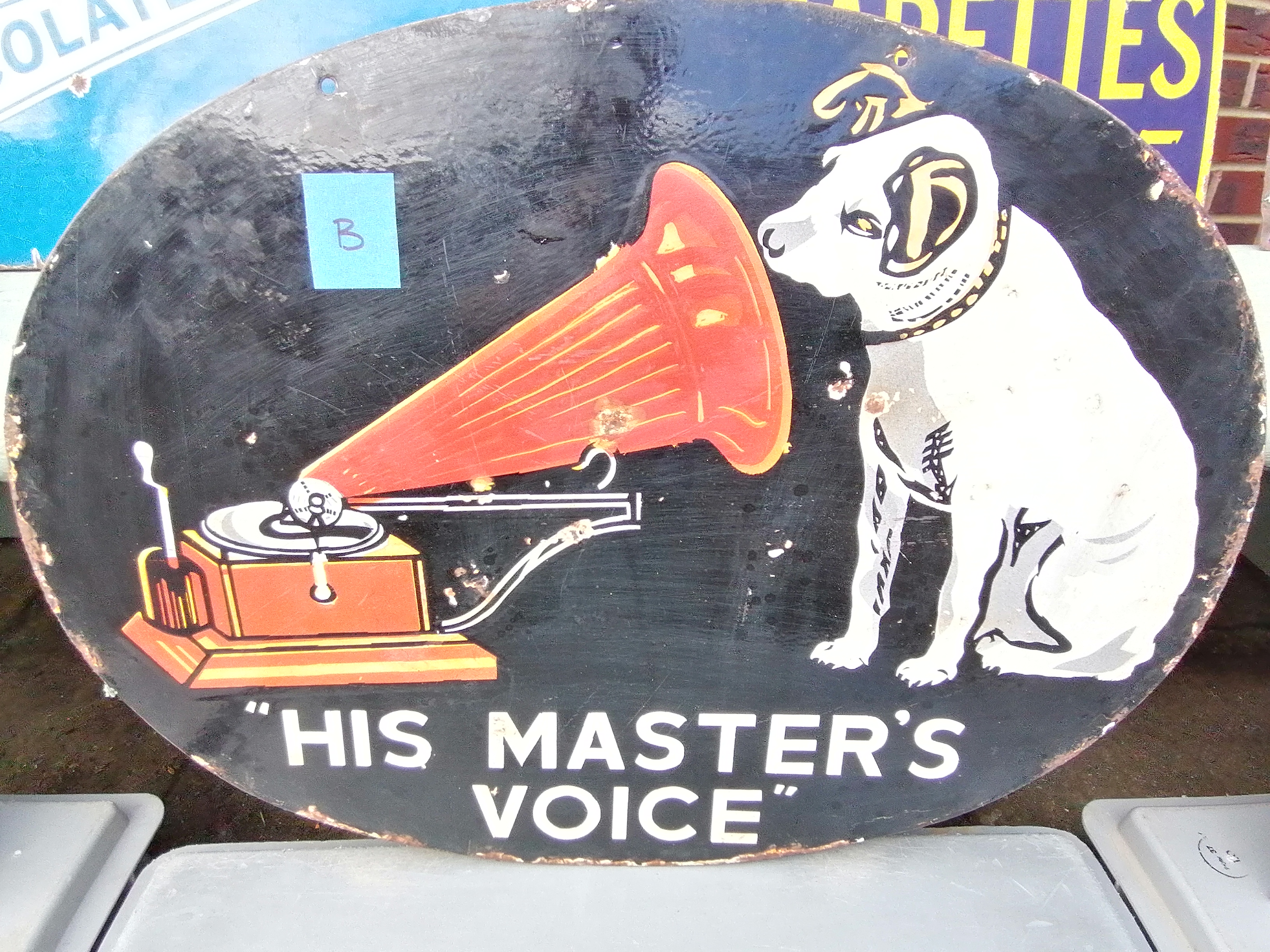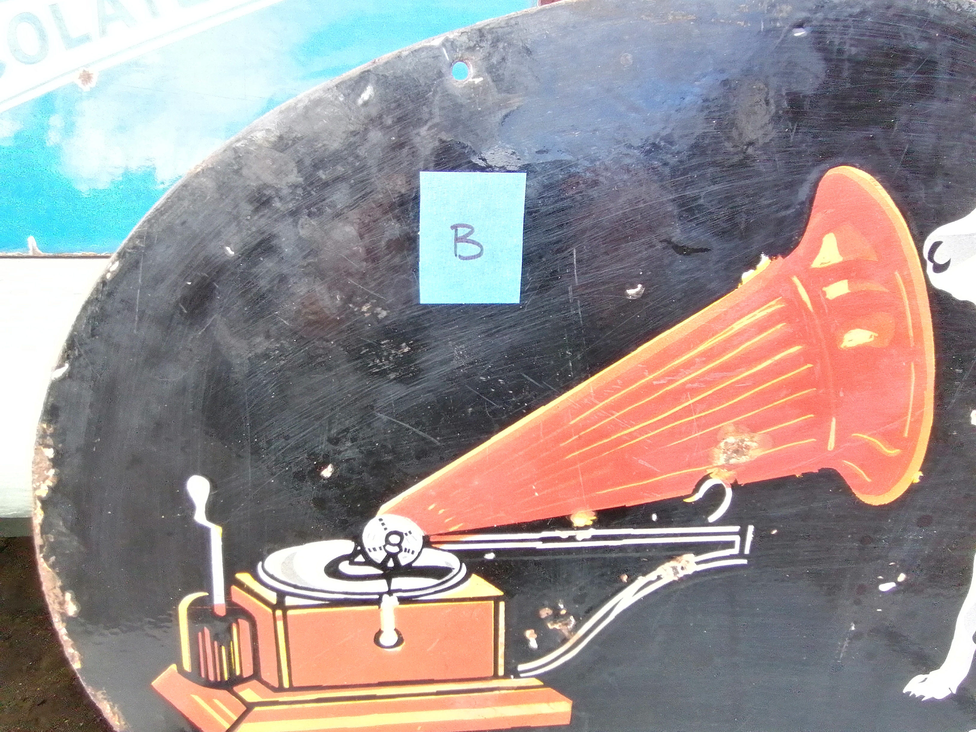 His Masters Voice, antique enamel double sided, shop advertising sign