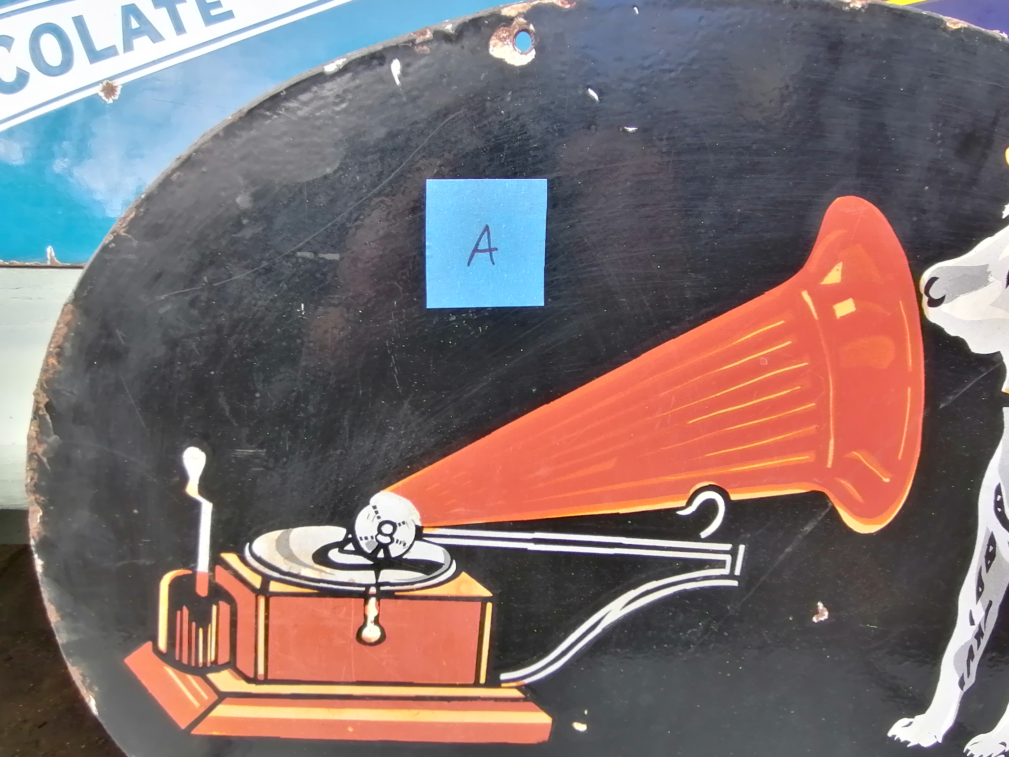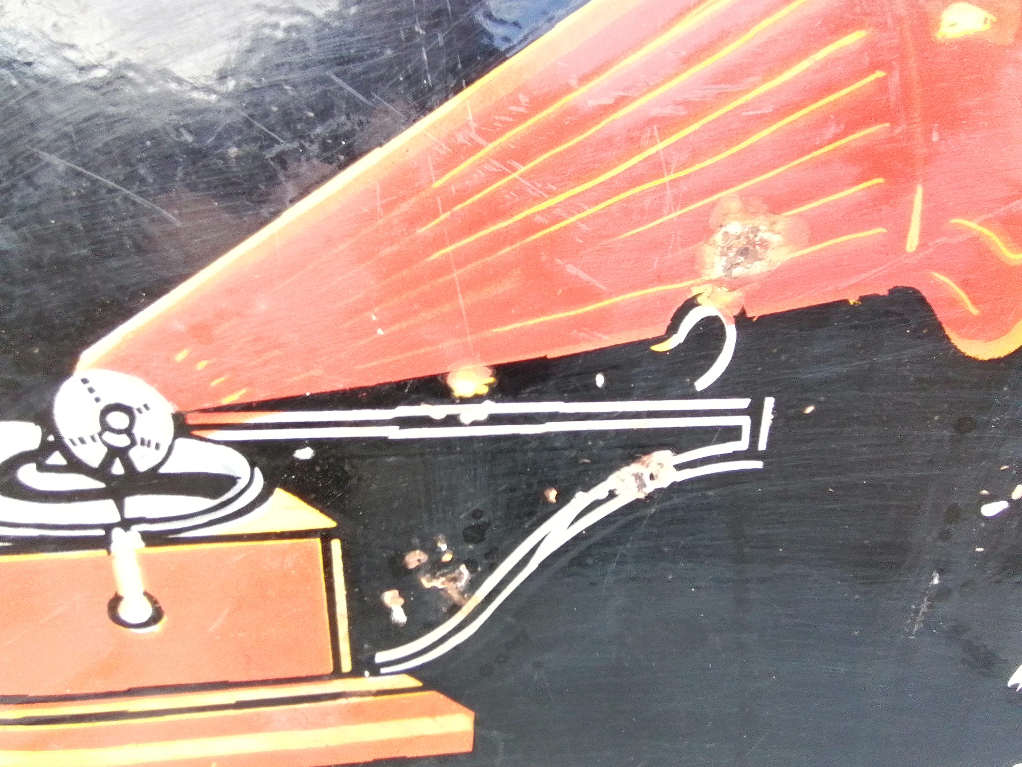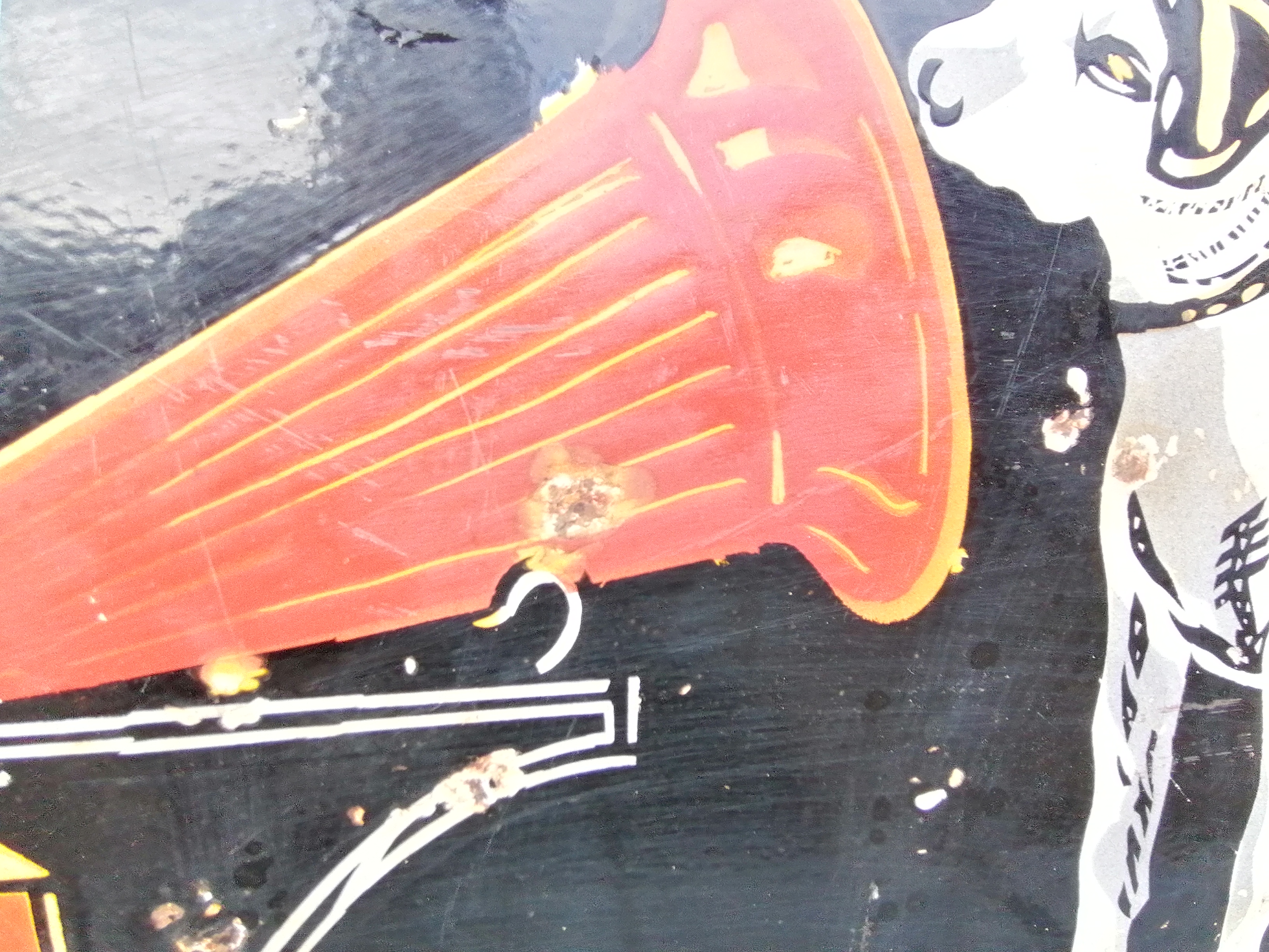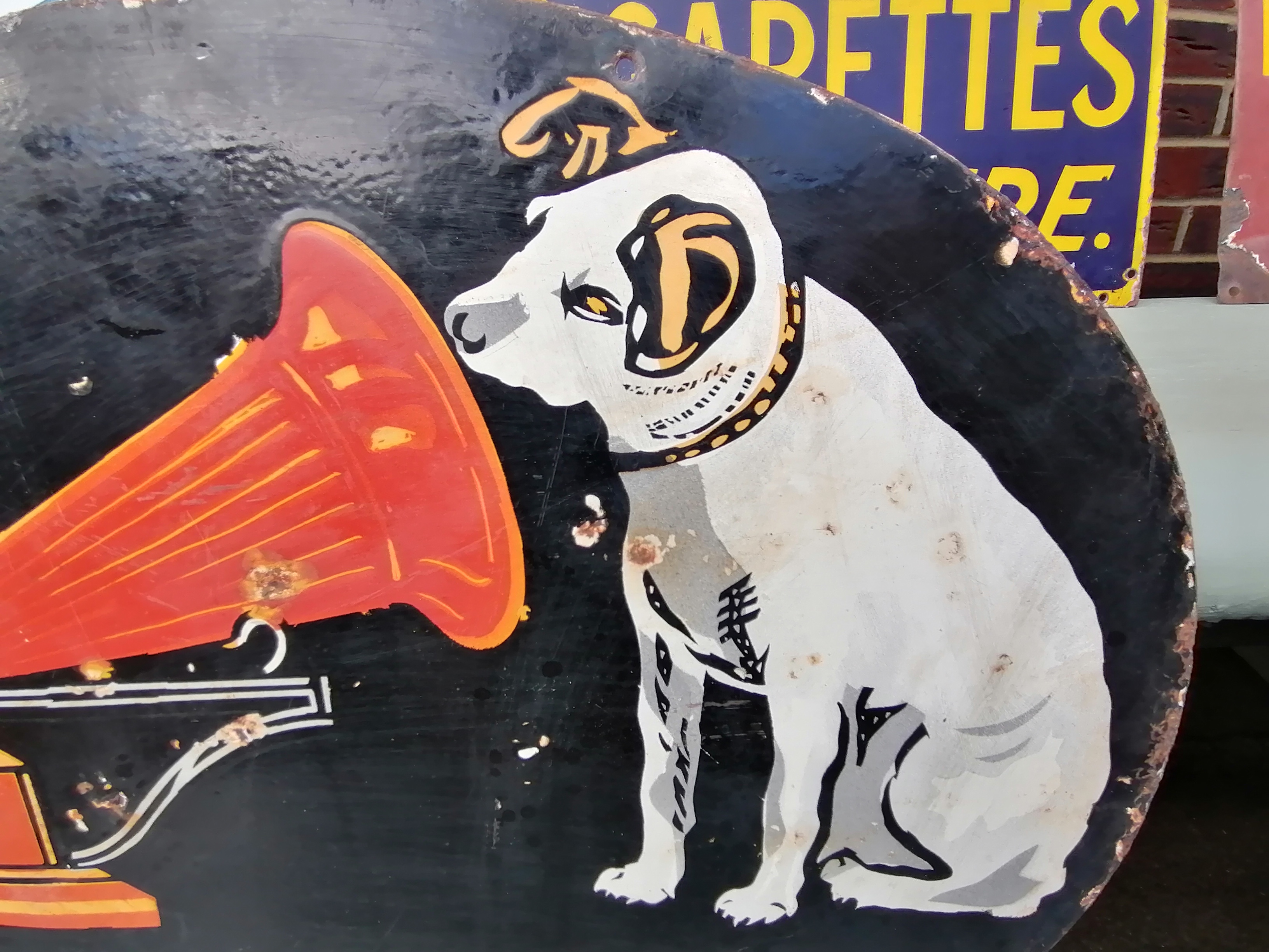 His Masters Voice, antique enamel double sided, shop advertising sign